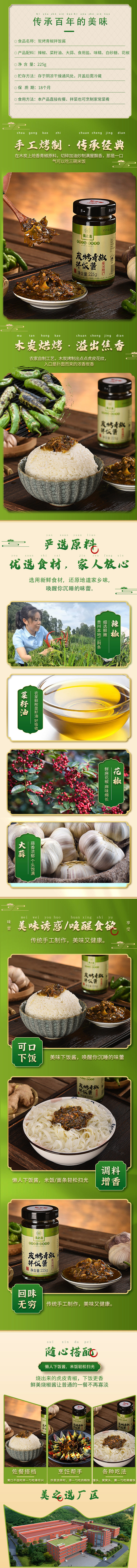 產品簡要:碳烤青椒醬 碳烤青椒醬采用純手工的碳烤方式,用貴州本特色鮮椒,大蒜,等用科學配方和現(xiàn)代工藝精制而成,香辣可口,是拌面和佐餐之佳品,其中含有維生素、辣椒素、蛋白質、礦物質等較高營養(yǎng)成分,具有獨特地方風味的佐餐調味品,是居家旅游的方便佳品。